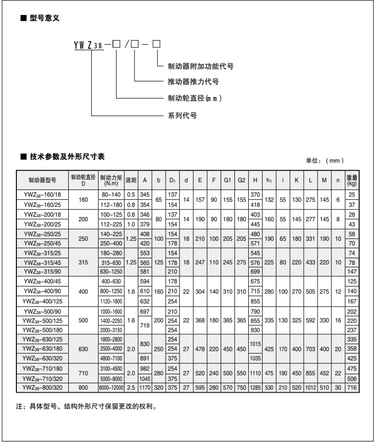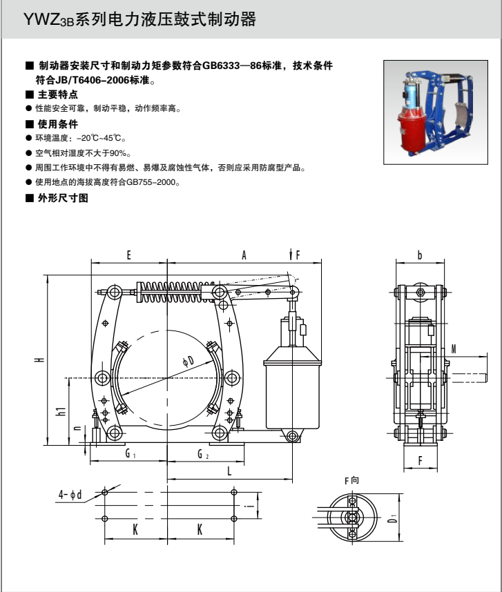 如有需要請(qǐng)聯(lián)系手機(jī):15225835568微信同號(hào)電話:0391-7588600傳真:0391-7588860 電力液壓塊式制動(dòng)器廣泛用于起重、冶金、礦山、港口、碼頭、建筑機(jī)械等機(jī)械驅(qū)動(dòng)裝置的減速或停車(chē)制動(dòng)。性能可靠,制動(dòng)平穩(wěn),動(dòng)作頻率高。主要擺動(dòng)鉸點(diǎn)設(shè)有自潤(rùn)滑軸承,傳動(dòng)效率高、壽命長(zhǎng),在使用過(guò)程中無(wú)需潤(rùn)滑。  符合標(biāo)準(zhǔn)  安裝尺寸符合GB633-1986標(biāo)準(zhǔn)?! ∈褂脳l件  環(huán)境溫度:-20℃